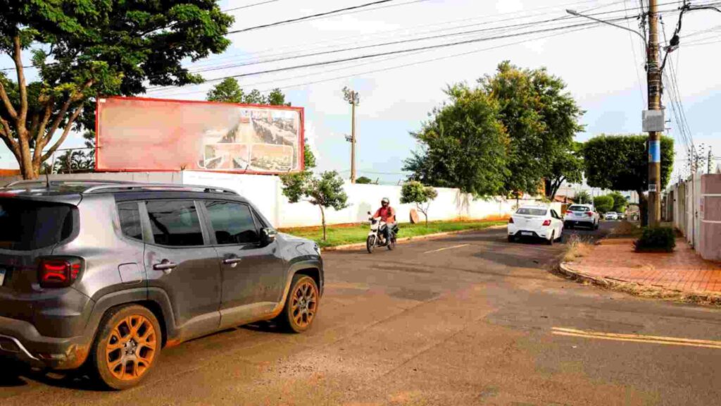 O terreno fica na esquina da Rua Santa Lina, via que recebe muitos veículos devido à ligação de acesso à Avenida Eduardo Elias Zahran a bairros como Rita Vieira.