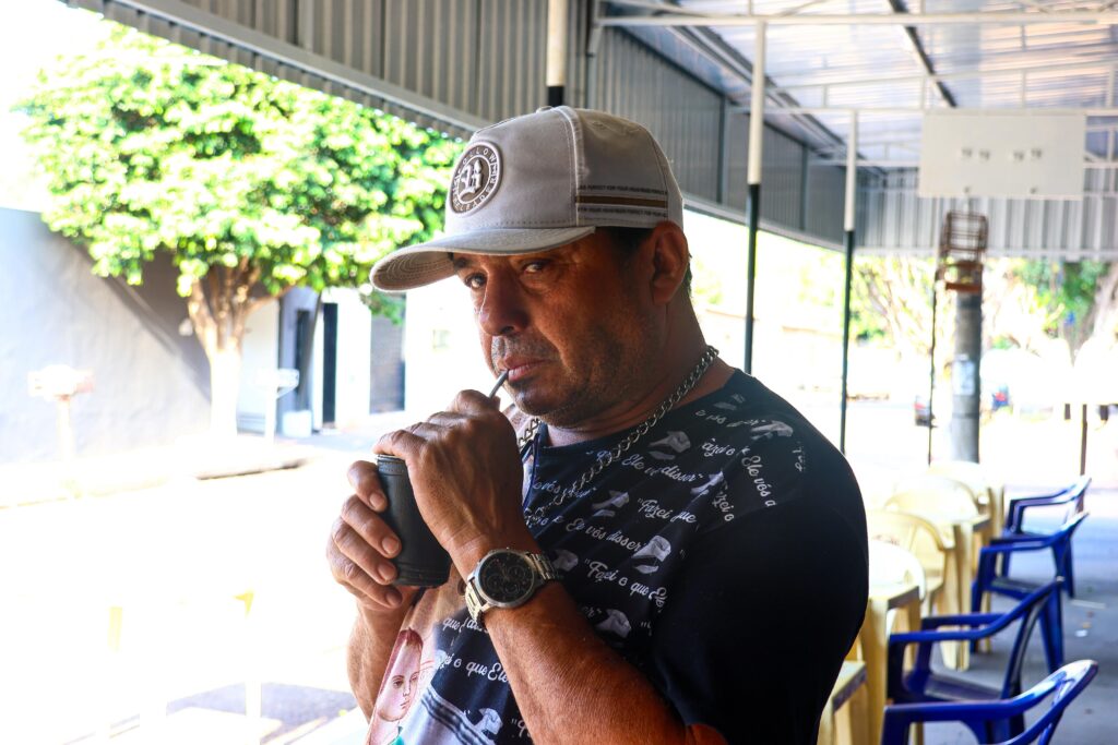 Já que ele não bebe durante o trabalho e eu também não pude conferir a temperatura da ‘gelada’ ali (também horário de trampo), encerramos a reportagem bebendo a famosa bebida de Mato Grosso do Sul que o baiano também adora: o “tereré”. O duro foi o ‘corintiano’ aqui (eu) beber no copo do ‘vascaíno’! Mas, neste calorão, sem rivalidade nessas horas, vida que segue!