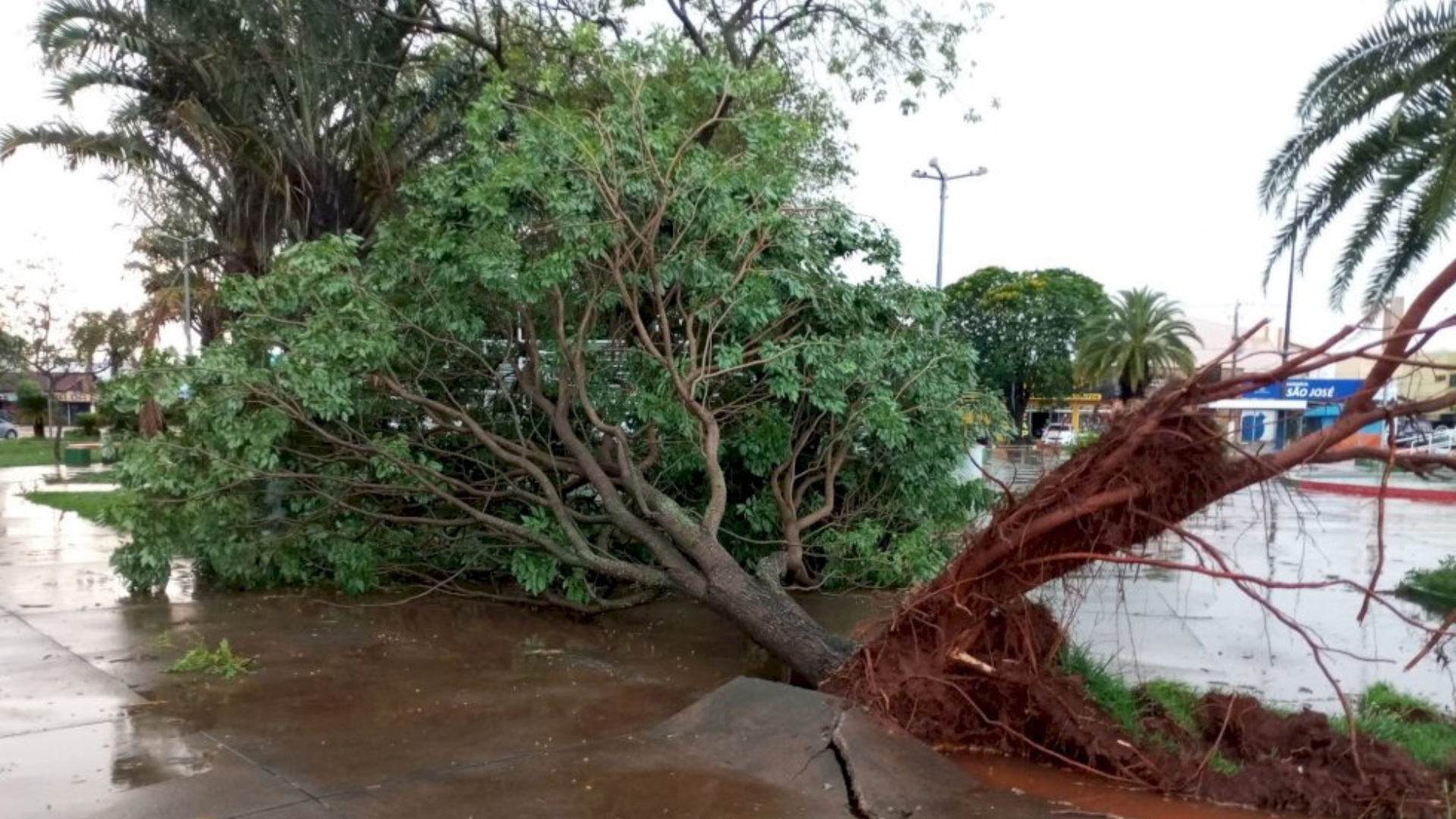 Cidades do interior de Mato Grosso do Sul sofreram estragos após chuvas de até 38,2 mm e ventos chegando a 101,52 km/h na quinta-feira (16). Em Caarapó, há registros de árvores arrancadas e estruturas retorcidas por ventania durante a tempestade. Já em Maracaju, até um caminhão tombou pela força das rajadas de vento.