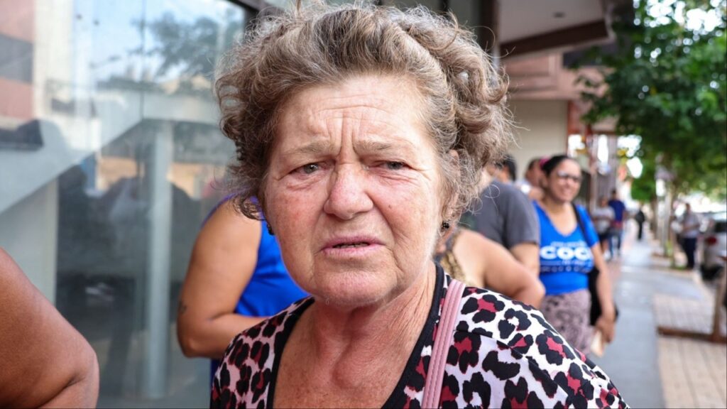 “A fila está andando, está organizado e tem pessoas muito respeitosas”, diz Mirian. “Eu já tinha vindo comprar o travesseiro e não tinha em promoção, espero comprar agora”, completa Irene.