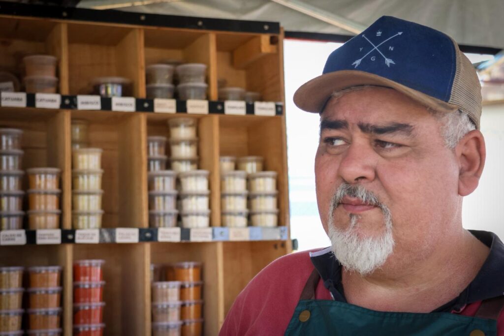 Outro feirante fiel aos domingos é Valdir Pereira Matos, de 51 anos. Ele participa da feira há três anos, onde comercializa os produtos orgânicos produzidos na aldeia onde vive. “Nós trazemos alimentos orgânicos: pequi, mel, abobrinha, quiabo, milho e pimenta. Todos naturais”, conta.