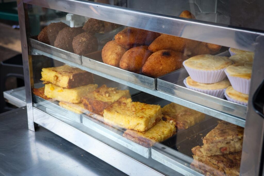 A família comercializa salgados variados — desde o tradicional pastel até a sopa paraguaia. Mas o verdadeiro diferencial está no molho verde especial, chamado de ‘lemonese’, com um toque agridoce que faz toda diferença na experiência. “O vinagrete e a lemonese são o carro-chefe daqui. Faz alguns anos que a gente faz e tem muitas pessoas que vêm aqui na feira só para prestigiar a lemonese”, conta Marco.