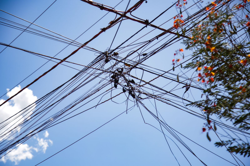 Problema crônico em Campo Grande, os fios pendurados e emaranhados de linhas telefônicas ou internet se tornaram comuns no cenário urbano. Além da poluição visual, a situação oferece riscos a ciclistas, motociclistas e pedestres, e propicia eventuais interrupções de fornecimento de serviços nos casos em que os fios baixos são arrastados por veículos de grande porte, como vimos acontecer com frequência em 2024.