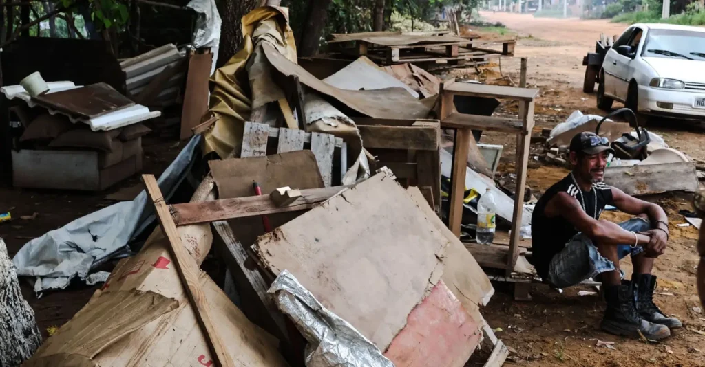 Segundo relatos de diversos moradores, a área seria utilizada como local para depósito irregular de lixo. Os ocupantes são famílias em clara situação de vulnerabilidade que afirmam não ter alternativas de moradia.