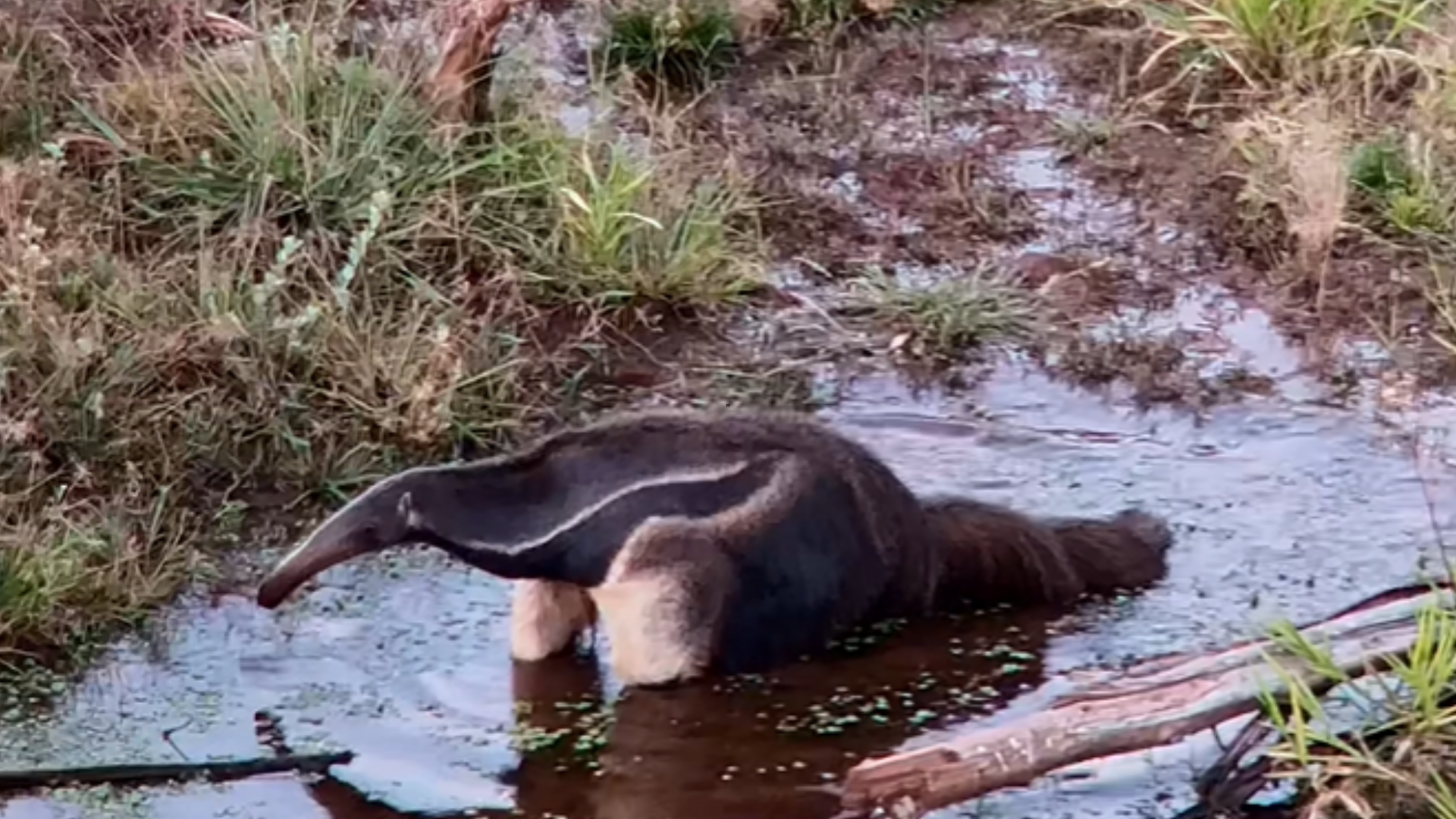 Nem os tamanduás aguentam o ‘calorão’ de Mato Grosso do Sul nesta semana. Água Clara registrou temperatura máxima de 40,1°C, nesta segunda-feira (15), e câmeras flagraram um tamanduá-bandeira tomando aquele banho refrescante para aliviar a alta temperatura.