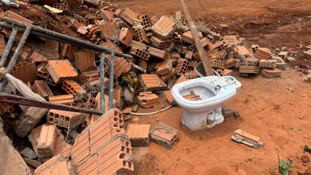 Quando a equipe de reportagem chegou ao local, a casa já estava demolida, e a mulher que morava no local com os quatro filhos, com idades entre dois meses e seis anos, não estava. Vizinhos disseram que ela foi hospitalizada.