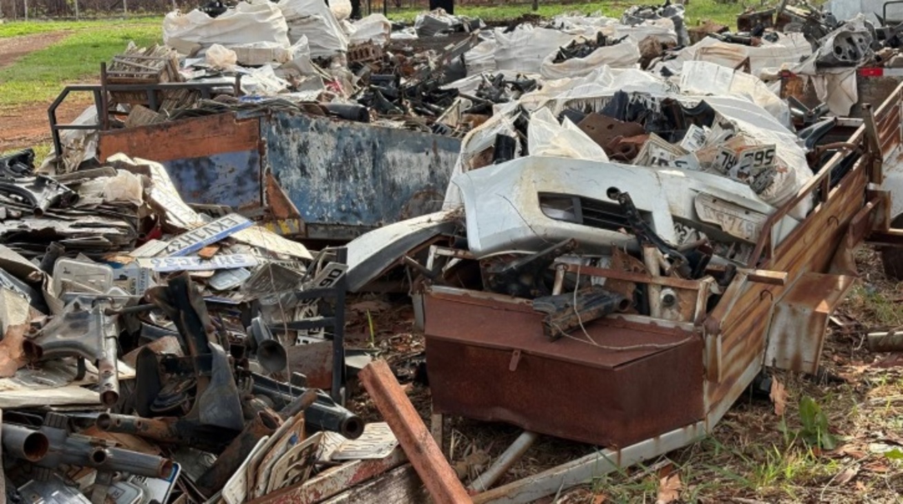 Ainda de acordo com o departamento, o volume massivo do lote é composto por restos de veículos, incluindo peças essenciais para a identificação, como blocos de motores, placas e chassis. Além disso, o lote contém um semirreboque.