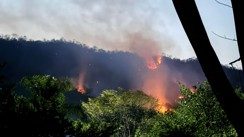 “Lá é uma morraria, então tem áreas muito íngremes, em que é impossível subir para combater e a gente tem que esperar o fogo descer até locais onde o combate é possível. Isso complica demais, porque você combate em uma área, mas o fogo se espalha para outro local e a gente precisa ir apagando aos poucos”, explica o chefe do Parque Nacional da Serra da Bodoquena, Sandro Pereira.