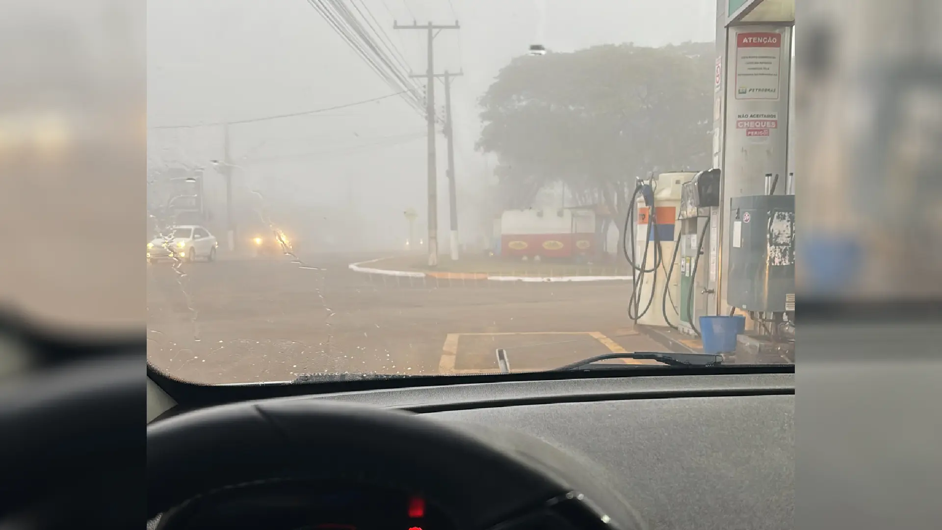 Uma frente fria atinge Ponta Porã na tarde desta sexta-feira (5), trazendo uma queda na temperatura e uma espessa neblina que cobre a cidade. Imagens da região, que fica a cerca de 320 quilômetros de Campo Grande, mostram o cenário de inverno, com a paisagem totalmente encoberta pela névoa.