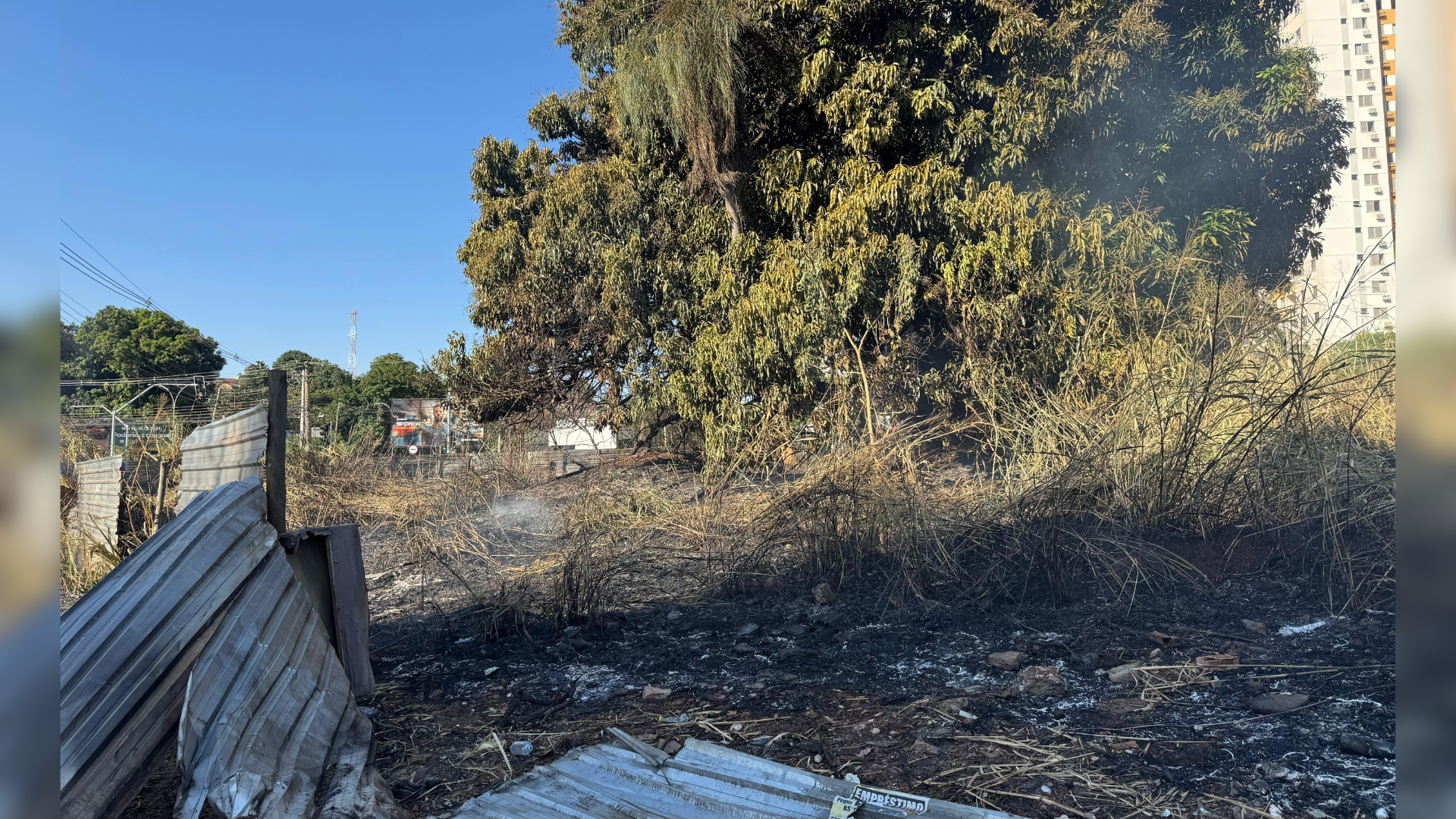 “Acho que faz uns 15 dias que foi colocado fogo, mas o fogo não conseguiu chegar até aqui. Só que, dessa vez, chegou. A gente não sabe quem é o dono, e essa área está toda abandonada, virou um lixão. Tem um lixão e tem os dependentes químicos ali do lado”, completa a moradora.