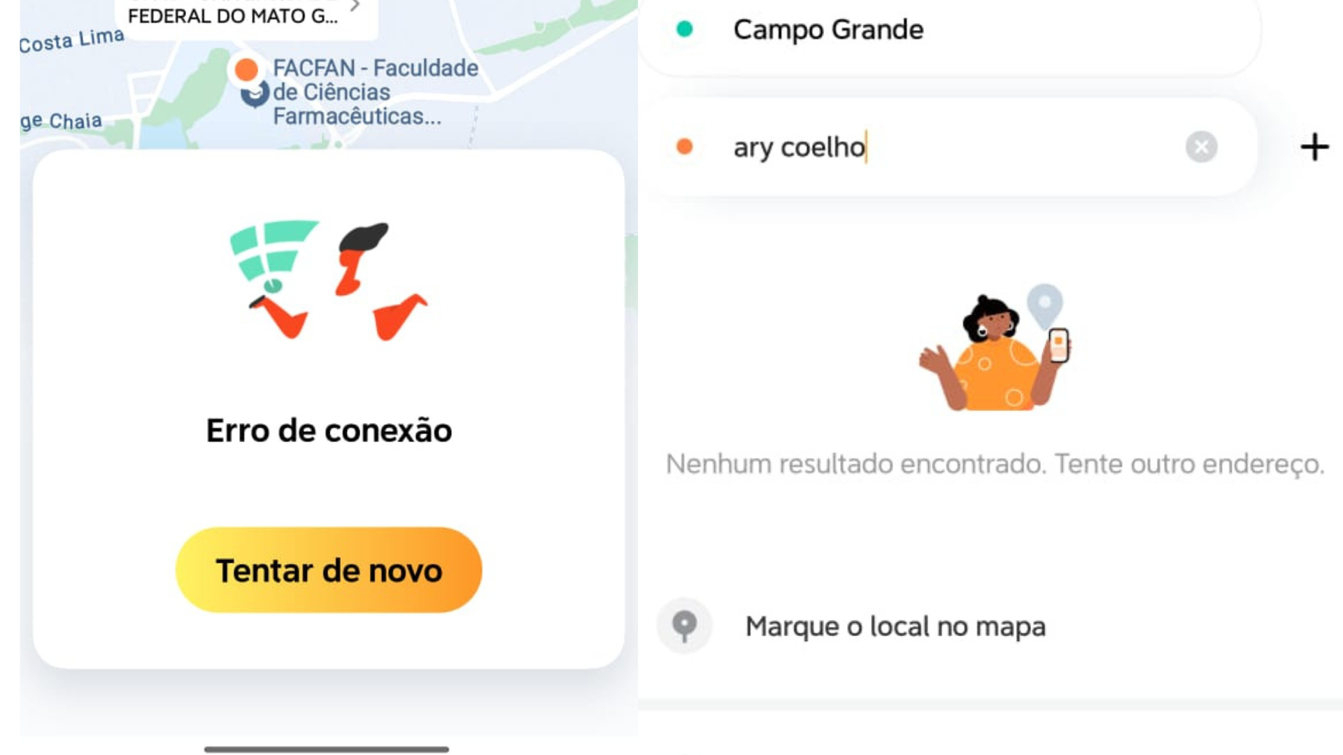 Os erros em ambos os serviços de viagem por aplicativo acontecem em todo o Brasil nesta manhã. Além de Mato Grosso do Sul, há relatos em São Paulo, Bahia, Rio de Janeiro, Minas Gerais e outros Estados.