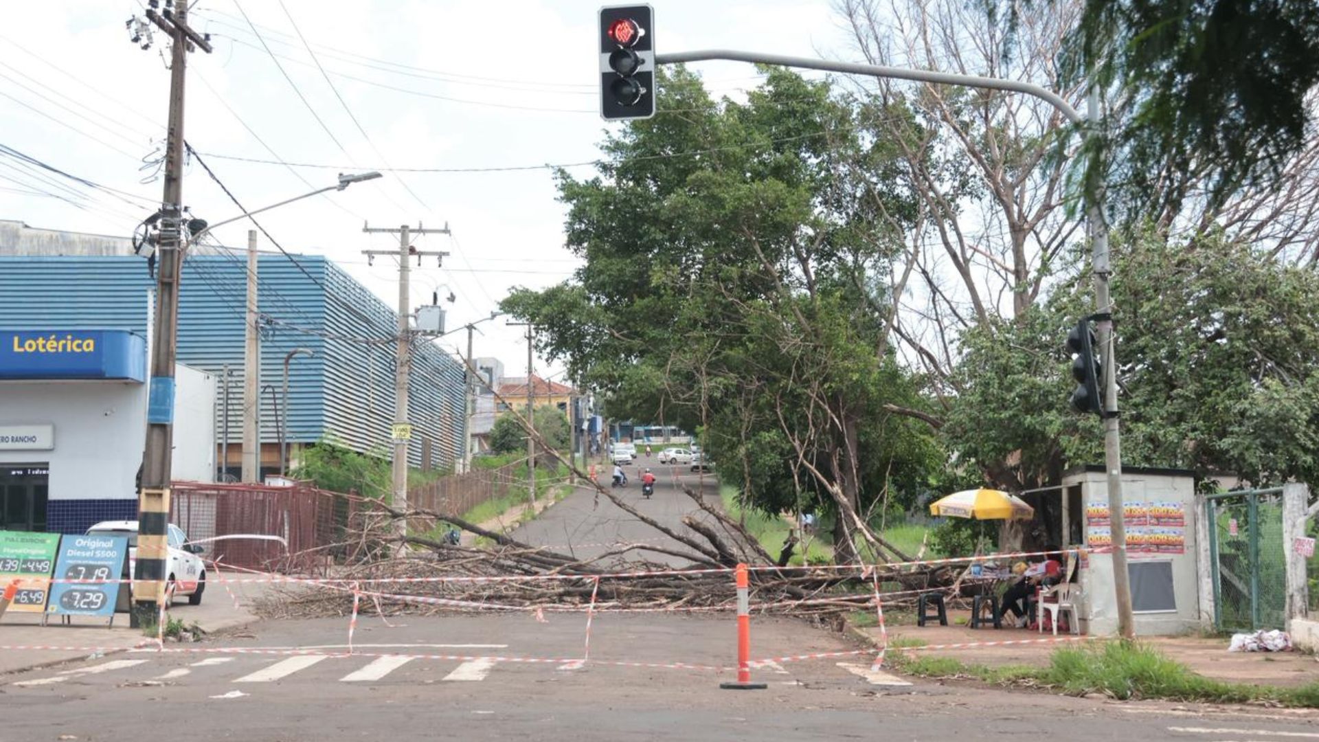 Junto da árvore que caiu, outras estão mortas, segundo relatos do frentista, Marco Aurélio Ibarra, que trabalha ao lado do local. Ele relatou que quando chegou para trabalhar a via estava interditada pela Agetran.