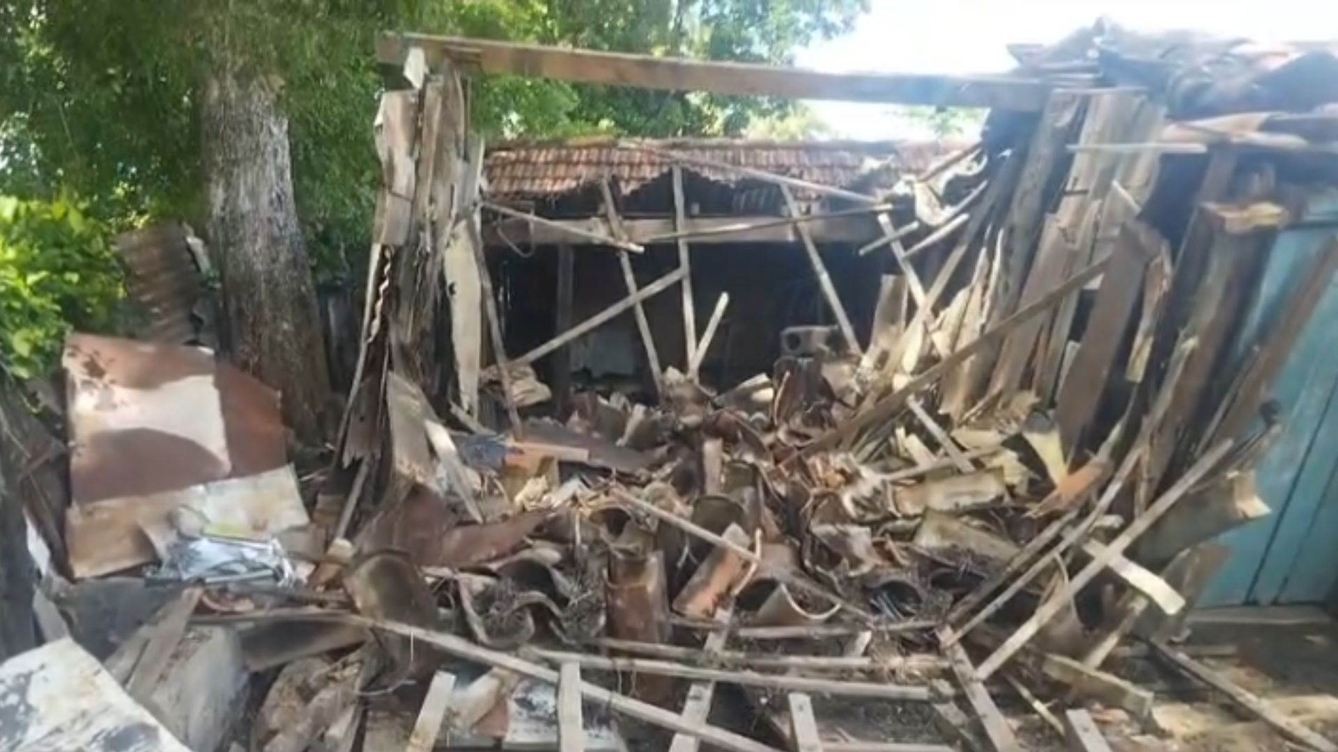 Parte de uma casa de madeira desabou na manhã de segunda-feira (20), na Rua Cuiabá, na região Central de Corumbá, a 413 km de Campo Grande. Apesar da destruição, ninguém ficou ferido.