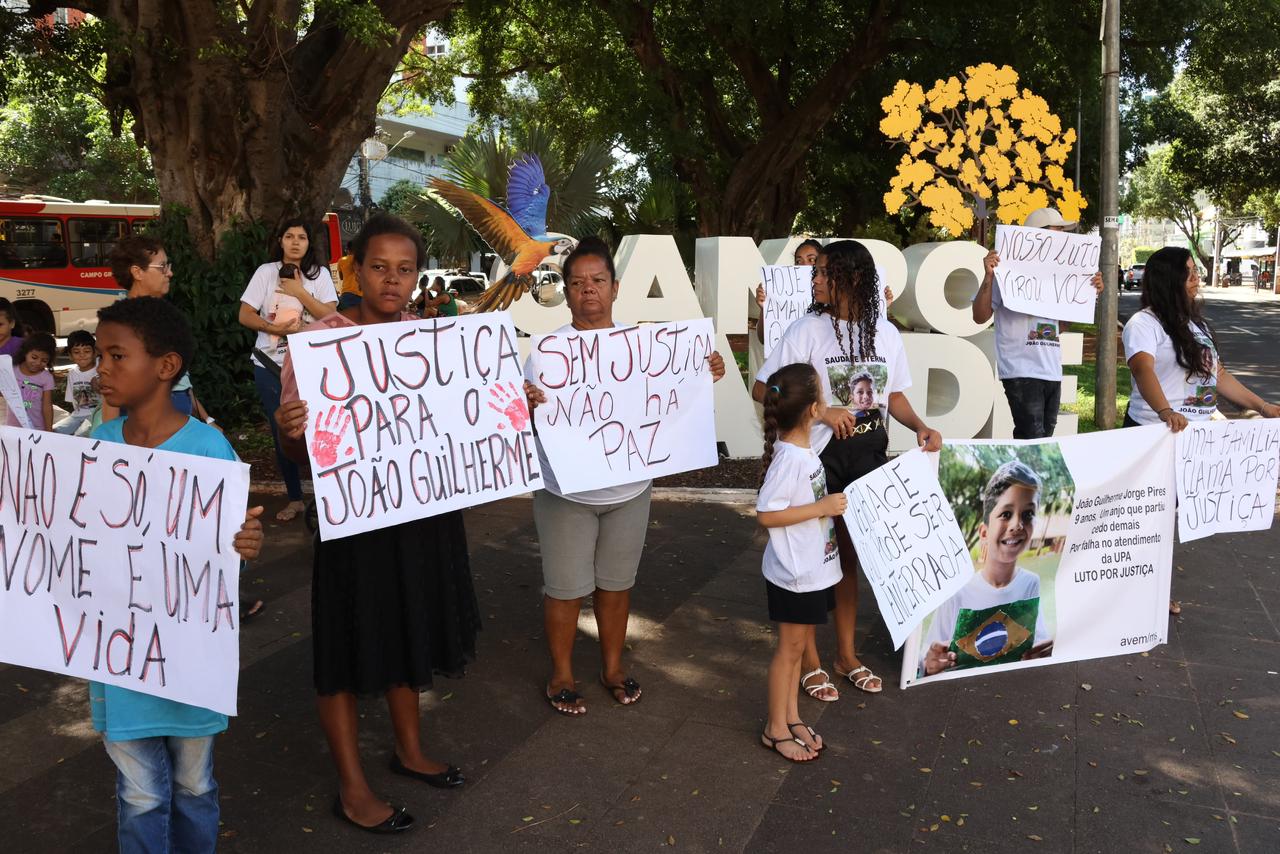 O silêncio da manifestação de familiares e amigos de João Guilherme Jorge Pires, de 9 anos, não significa tranquilidade. Eles acreditam que o pequeno morreu por negligência após uma saga em Upas (Unidades de Pronto Atendimento) de Campo Grande. “Sem justiça não há paz”, estampa um dos cartazes.