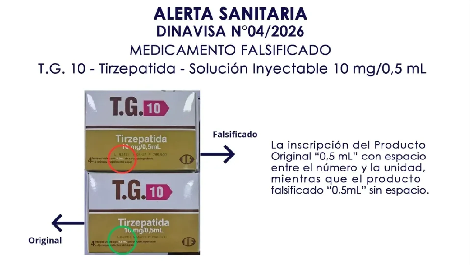 A Dinavisa-PY (Direção Nacional de Vigilância Sanitária do Paraguai) publicou um alerta sobre a falsificação de um lote do medicamento emagrecedor Tirzepatida. O anúncio destina-se tanto aos profissionais de saúde quanto à população em geral.