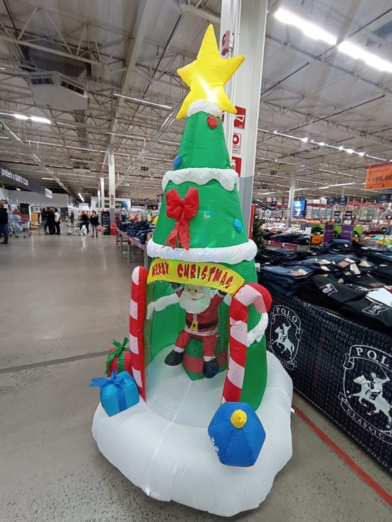 Quem quiser enfeitar a casa adquirindo itens do Sam’s Club não vai desembolsar menos de R$ 100 por qualquer item. A mencionada árvore de natal inflável de 2,40 m de altura, que acompanha um papai noel rodeado de presentes com a mensagem “Merry Cristhmas”, está à venda por R$ 578,00.