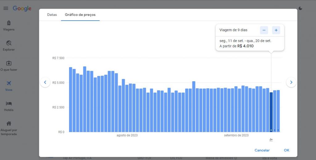O ano de 2025 está longe, então não é possível simular voos até lá, mas a data mais distante na simulação do Google Voos, em setembro de 2023, mostra que as passagens para Florença custam a partir de R$ 4.010,00.