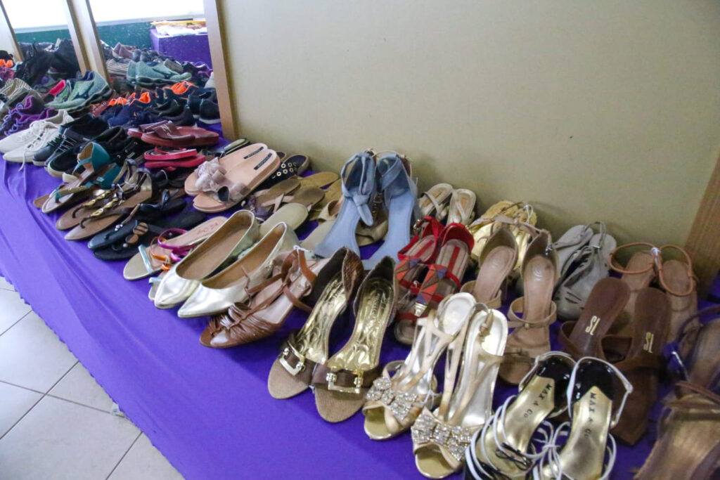 No bazar especial em comemoração ao Dia das Mulheres, sapatos da marca Santa Lolla, Schutz, Arezzo, peças de tricô e até jaqueta de couro por R$ 8. A sessão também inclui peças variadas como material escolar, brinquedos e até fantasia de sexshop.