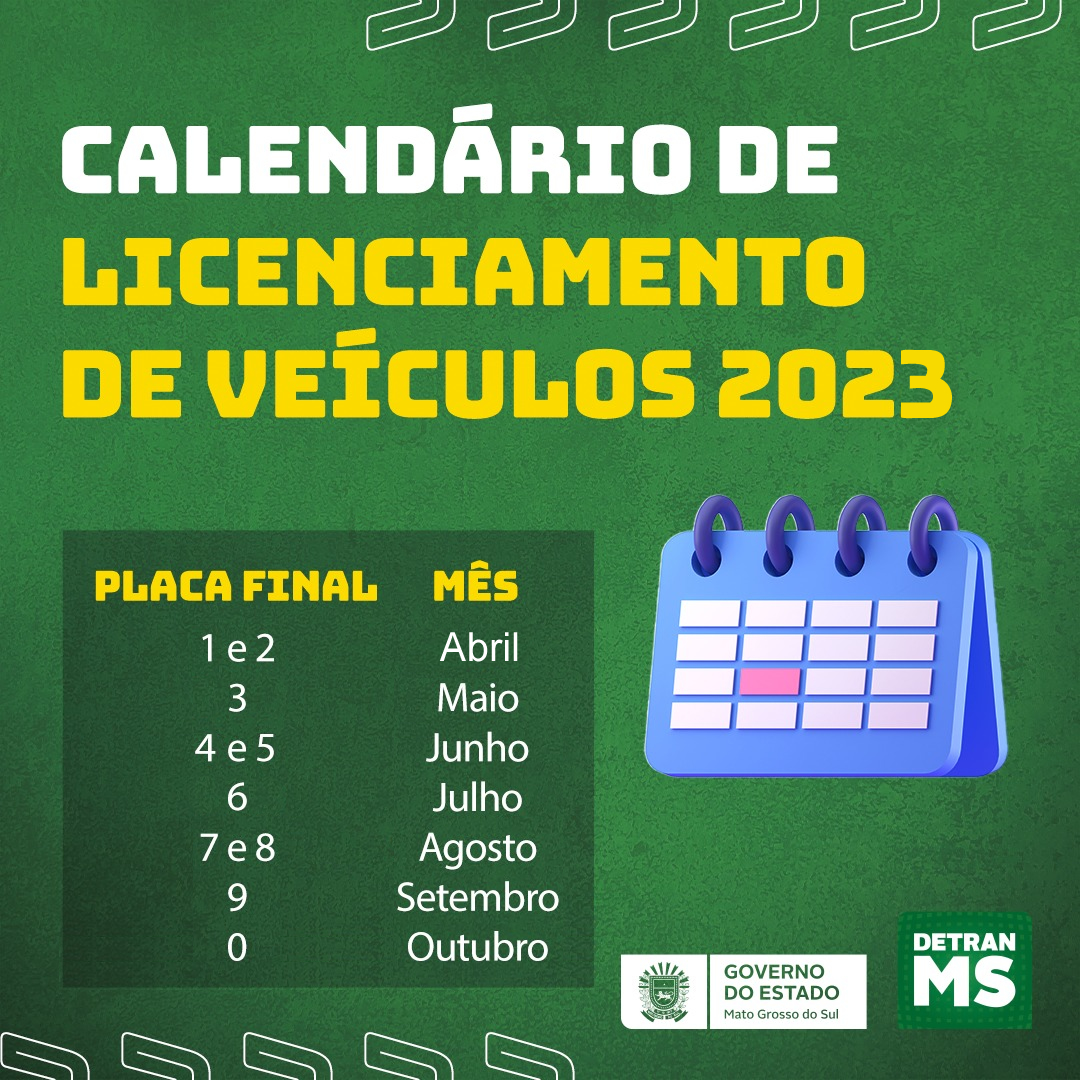 O calendário anual é estipulado pelo Detran e a data de vencimento varia de acordo com o dígito final da placa do veículo. Confira a tabela de 2023 logo abaixo: