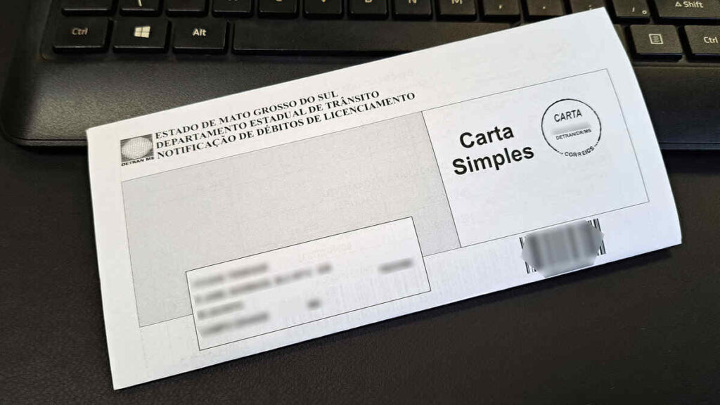 A correspondência que o cidadão receberá em casa possui as informações do veículo, do proprietário e a descrição das dívidas existentes, com código de barras ou QR Code para pagamento.