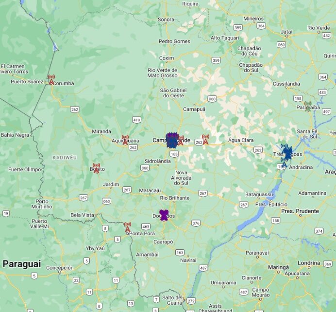 Três Lagoas, a 326 km de Campo Grande, e Paranaíba, a 407 km da Capital, completam o ranking de cidades que possuem mais de uma antena, com nove e dois pontos de conexão, respectivamente. As demais cidades contam apenas com uma antena.