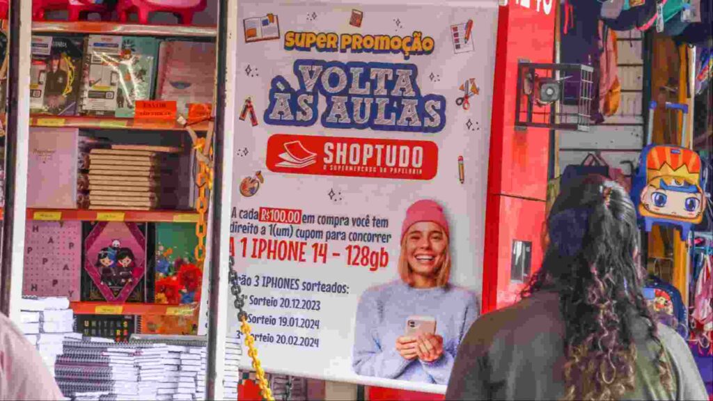 Em uma das lojas, a empresa contratou um palhaço para chamar a atenção de crianças e pais, outras aderem às promoções ou várias formas de pagamento. Até mesmo sorteio de um iPhone 14 é chamariz nessa época.