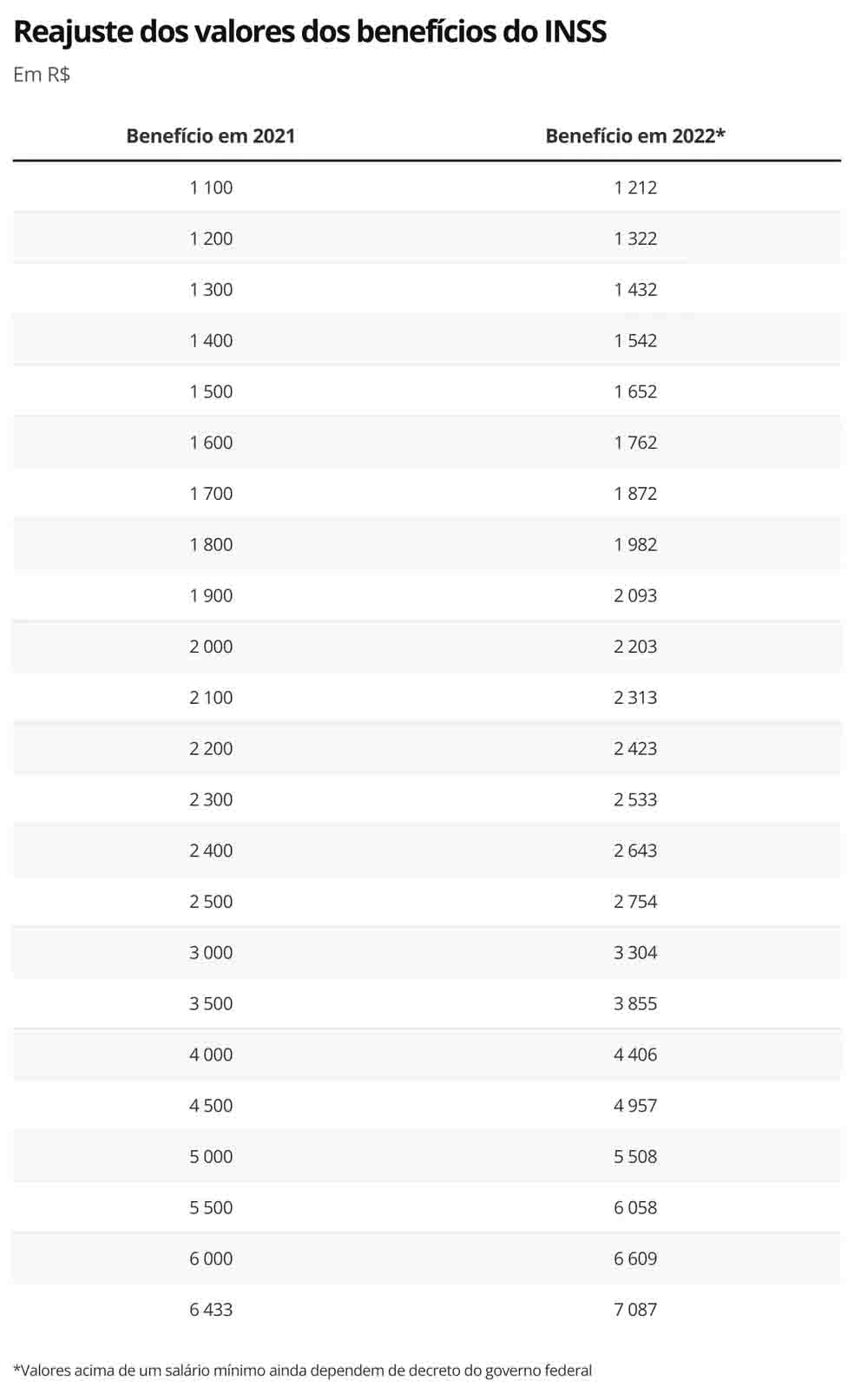 Veja abaixo como fica seu benefício de acordo com o valor que recebia em 2021: