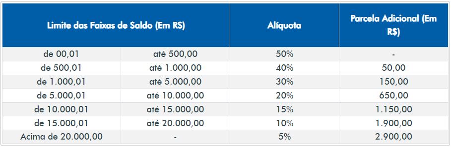 O valor do saque-aniversário segue uma tabela com sete faixas de saldo. Quanto maior for o saldo menor será a porcentagem disponível para saque. Mas também faz parte do recebimento um valor adicional. Confira a tabela:
