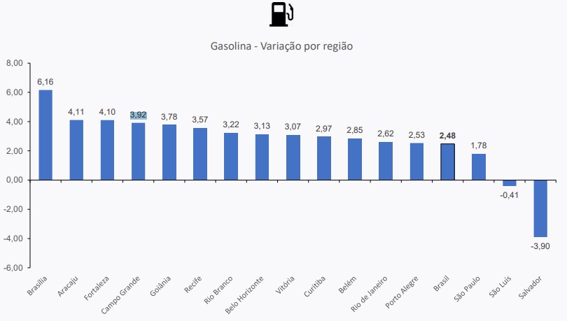 Em Campo Grande, também foi registrada variação significativa na gasolina (3,92%).