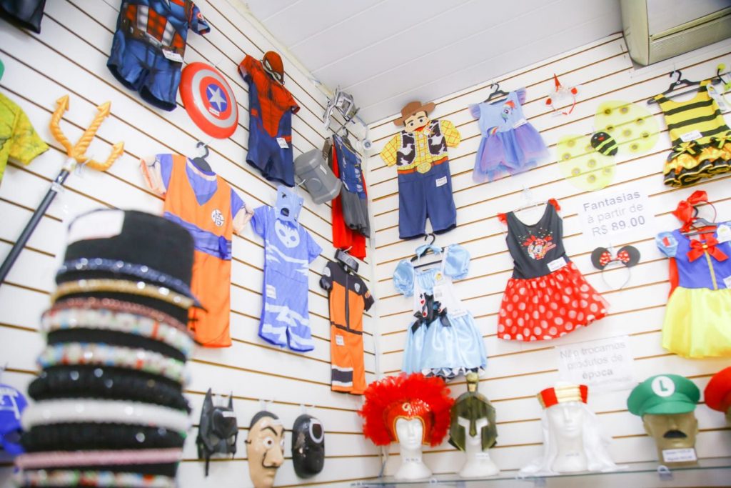 Na loja São Gonçalo, diversas opções estão expostas nos corredores que ganharam o brilho e extravagância típicos da época. Entre fantasias e adereços, variedades tanto para adultos quanto para a criançada.