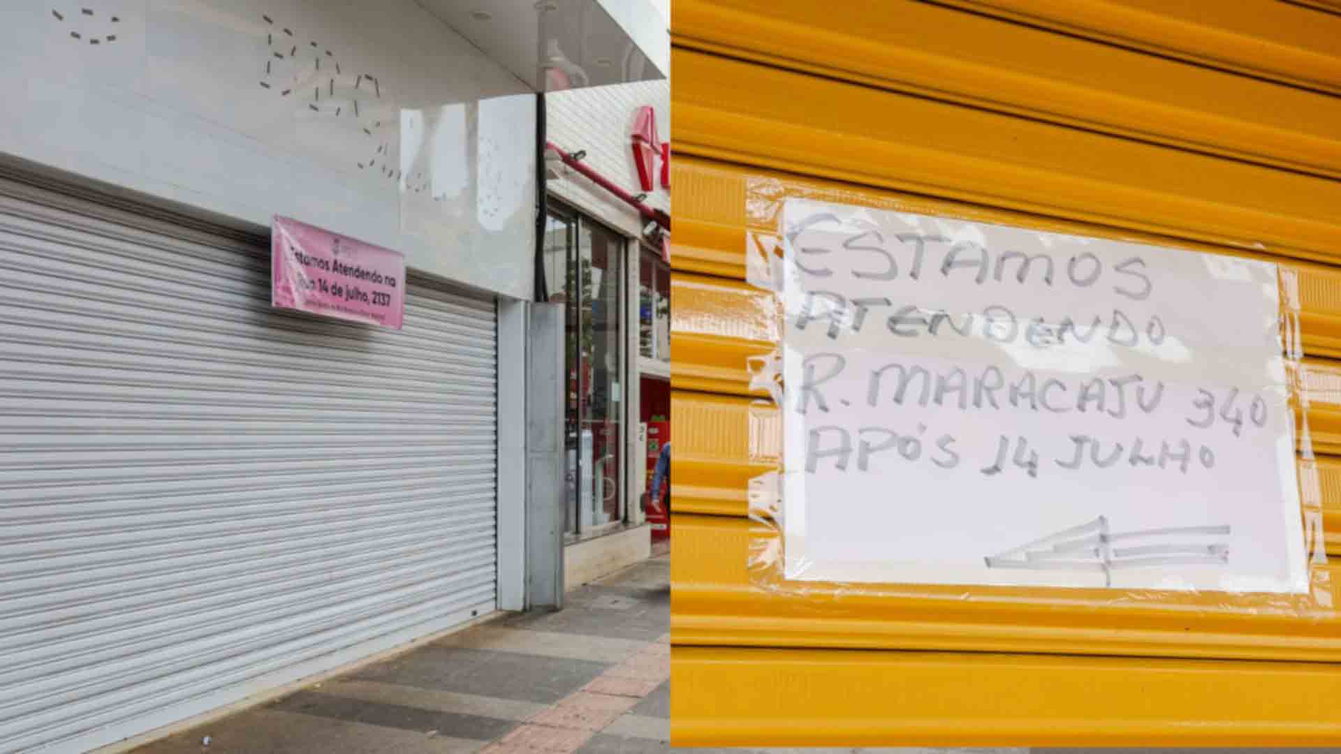 No entanto, o número de lojistas que desistiram do ponto pode ser maior, já que várias salas estão vazias ou com placa de mudança de endereço e ainda não foram colocadas para locação. No cruzamento da Rua 14 de Julho com a Rua Maracaju, por exemplo, há quatro anúncios de locação um ao lado do outro.