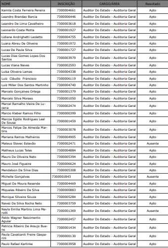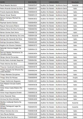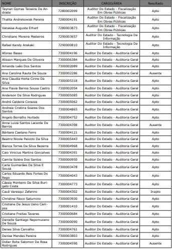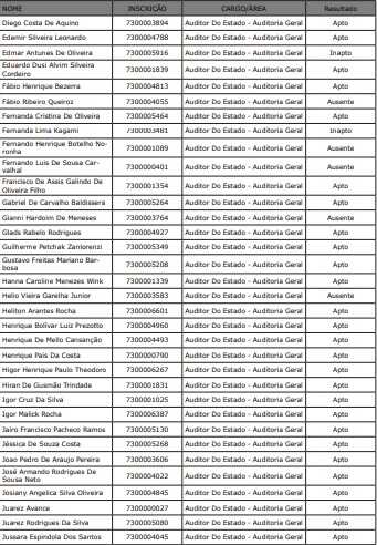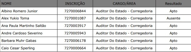 A CGE (Controladoria-Geral do Estado) divulgou, nesta quarta-feira (15), pelo Diário Oficial de Mato Grosso do Sul, o resultado preliminar do exame de saúde, antropométrico e clínico dos candidatos à vaga de auditor do Estado.