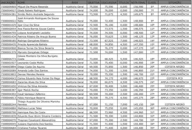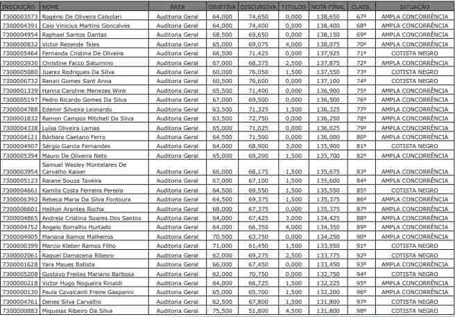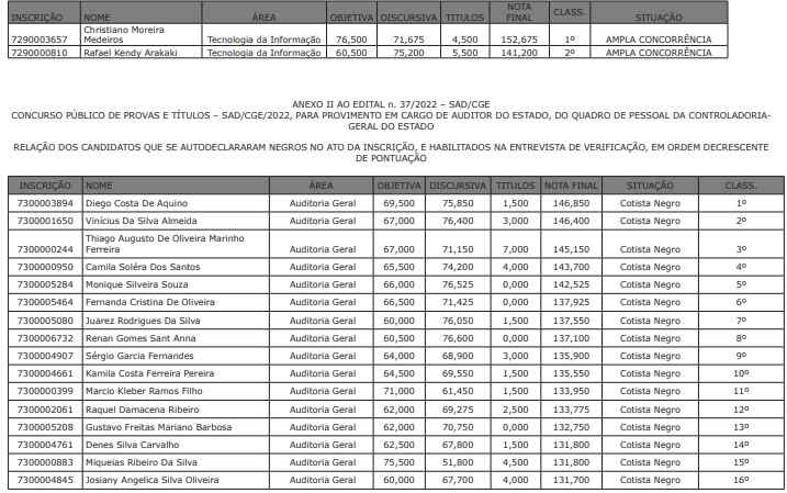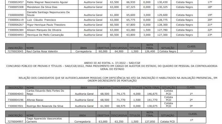 A CGE (Controladoria-Geral do Estado) divulgou nesta terça-feira (28), no Diário Oficial de Mato Grosso do Sul, a pontuação e classificação geral dos aprovados em todas as fases do concurso público ao cargo de auditor do Estado.