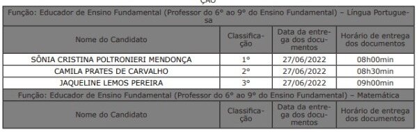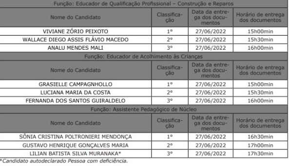 Os convocados devem apresentar documentos e comprovação de requisitos para contratação.