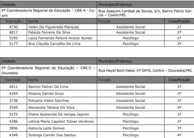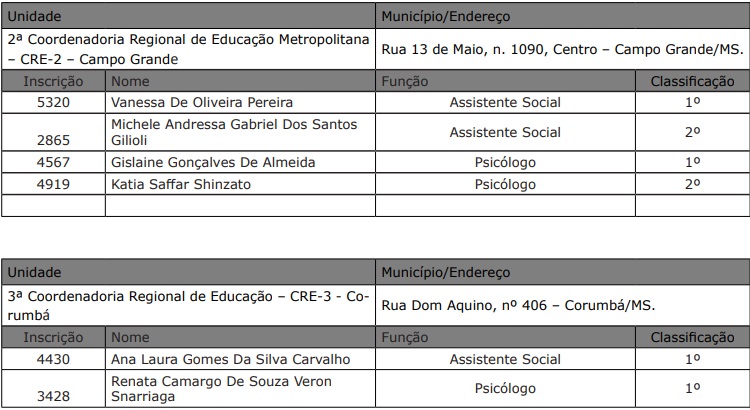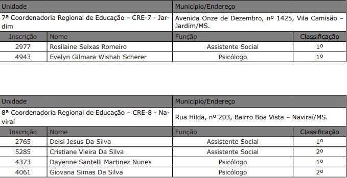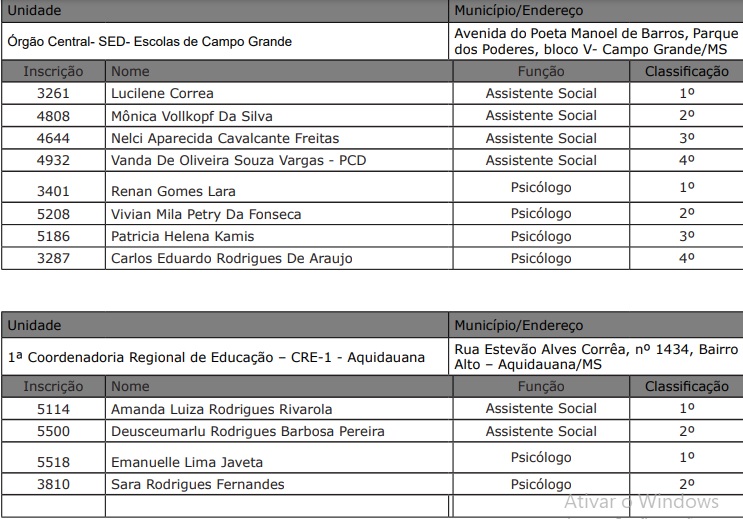 A SAD (Secretaria de Estado de Administração e Desburocratização) publicou nesta quarta-feira (11), no Diário Oficial de Mato Grosso do Sul, a relação de aprovados no processo seletivo para o quadro de vagas de psicólogos e assistentes sociais da SED (Secretaria de Estado de Educação).