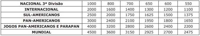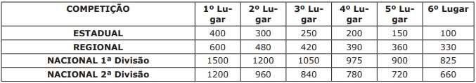 Na categoria Bolsa-Atleta Estudantil, as competições serão pontuadas até a 6ª colocação geral.