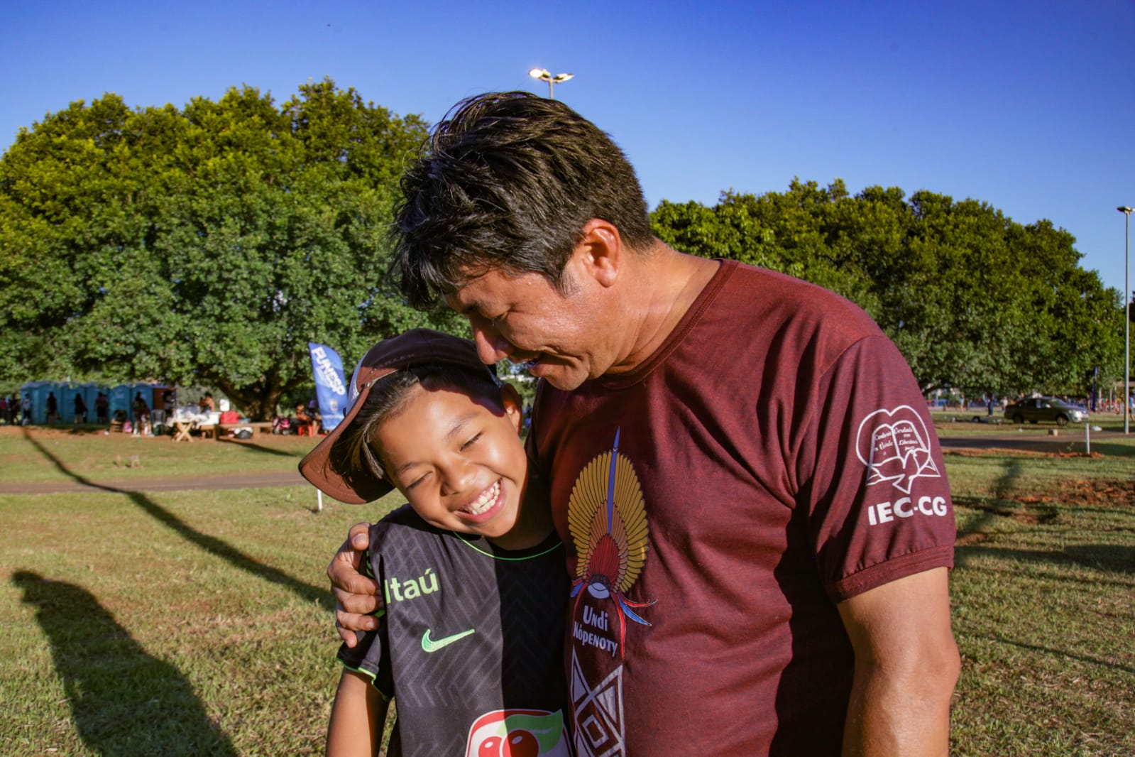 Josias Jordão Ramires, 37 anos, é cacique na Aldeia Urbana Marçal de Souza. Ao observar um grupo que se preparava para o cabo de guerra, ele relembra que o encontro esportivo mostra para a sociedade a importância da comunidade indígena urbana, mas que também consegue manter “seu espírito de resistência e cultura” vivos no cotidiano da cidade.