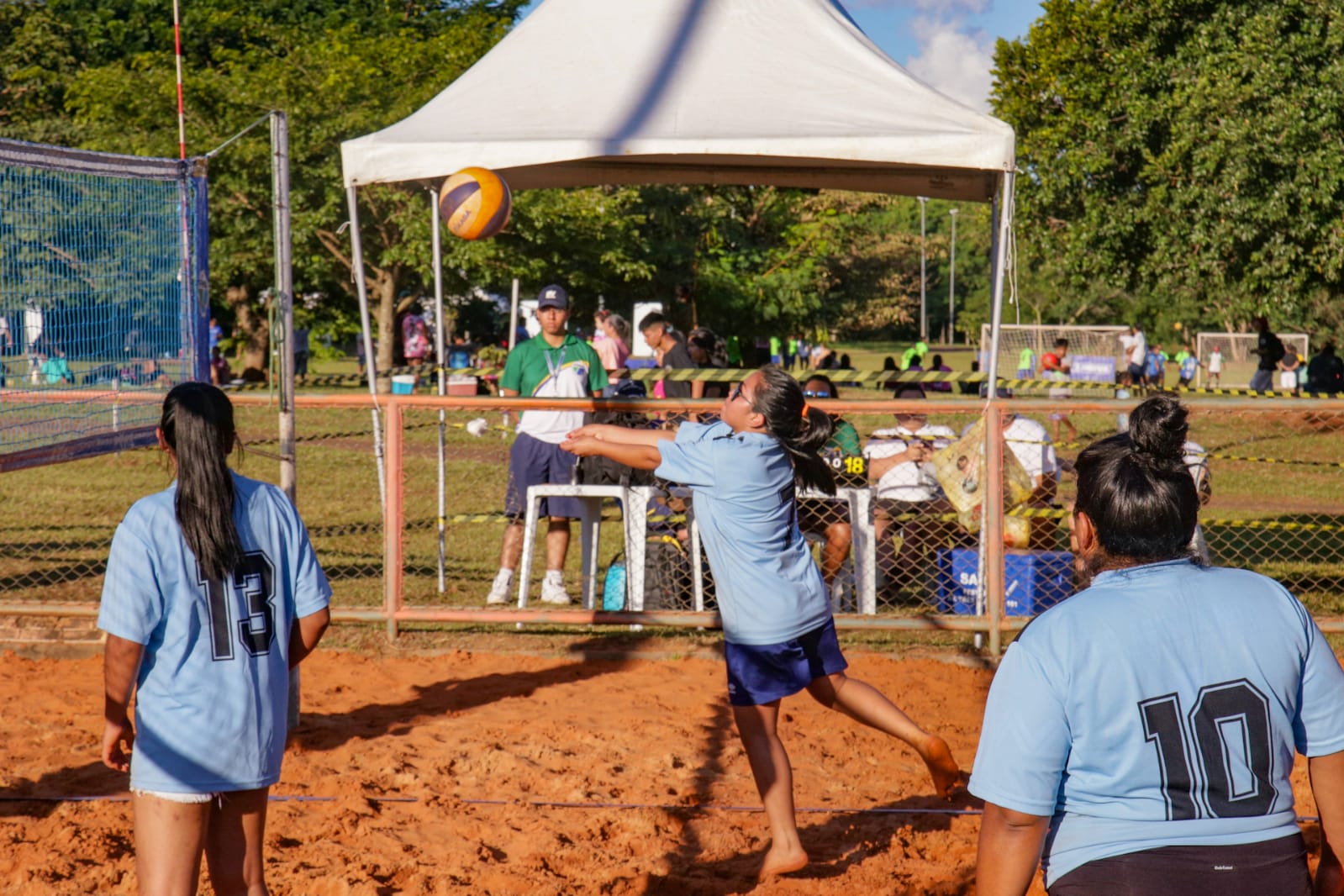 O acadêmico de Direito Bryan Dias Soares, 22 anos, exibia com alegria o troféu de primeiro lugar conquistado nas disputas de vôlei 4×4. Morador da comunidade Marçal de Souza, no Bairro Tiradentes, destacou que dava sequência ao legado do pai, hoje treinador do time de futebol feminino. “Somos mais de 15 mil indígenas e esse evento dá visibilidade esportiva e cultural”, conta lembrando que os treinos semanais na quadra e areia fizeram a diferença.