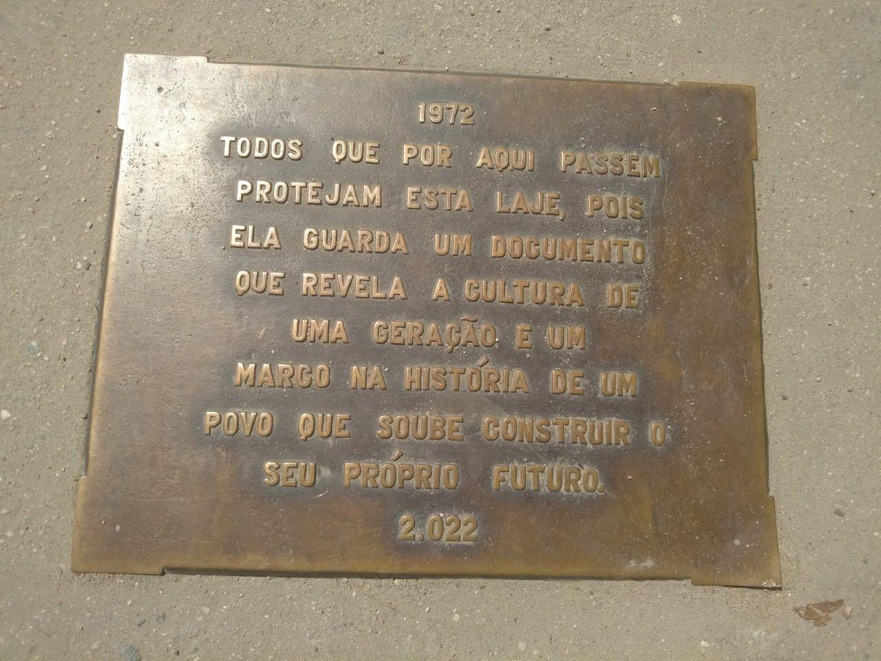 Placa na entrada do Museu Nacional com as escrituras: “Todos que por aqui passem protejam esta laje…” (Foto: Reprodução/Internet)