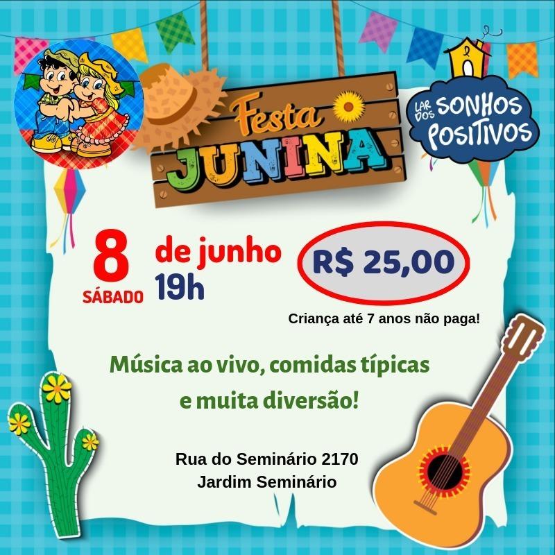 O Lar dos Sonhos Positivos, antiga Afrangel, vai realizar no dia 8 de junho uma deliciosa festa junina “open food” com o objetivo de arrecadar fundos para a instituição em Campo Grande. O valor do ingresso de R$ 25 dá direito a comer à vontade quitutes típicos do evento popular como milho cozido, pé de moleque, arroz carreteiro, cocada e quentão.