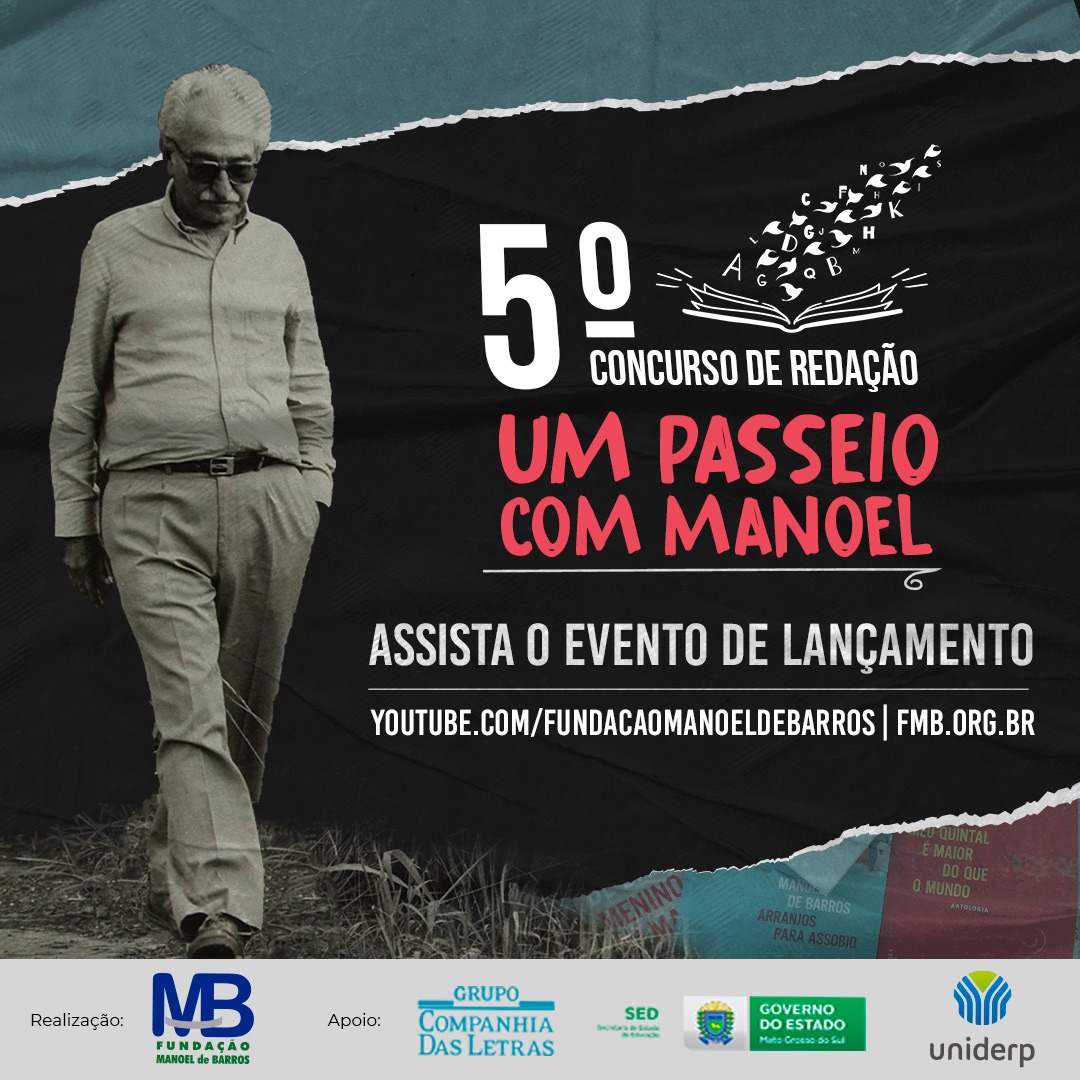 O ‘5º Concurso de Redação – Um Passeio com Manoel’, lançado nesta quinta-feira (27), além de incentivar o conhecimento acerca da obra de Manoel de Barros, busca estimular o interesse à prática da escrita com intuito de desenvolver habilidades de redigir e promover o interesse pela leitura dos estudantes.