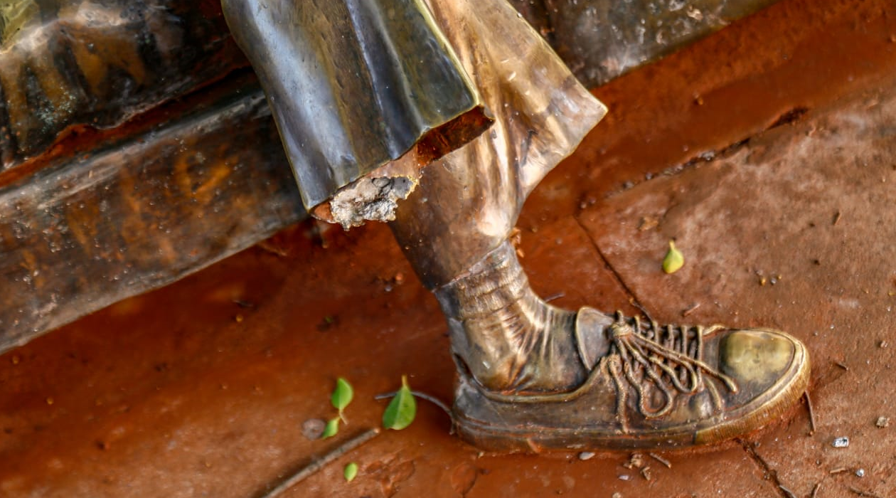 Emblemática no centro de Campo Grande, a estátua do poeta Manoel de Barros amanheceu depredada nesta segunda-feira (19). Vândalos arrancaram um dos pés da figura que fica localizada entre a Avenida Afonso Pena e a Rua Rui Barbosa.