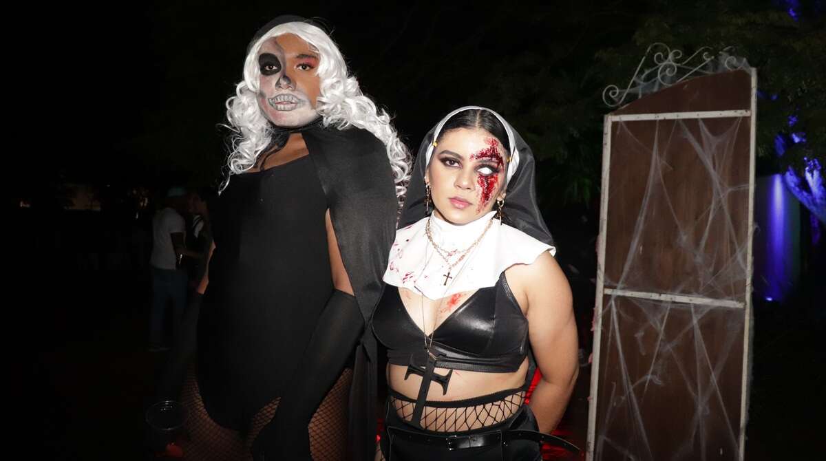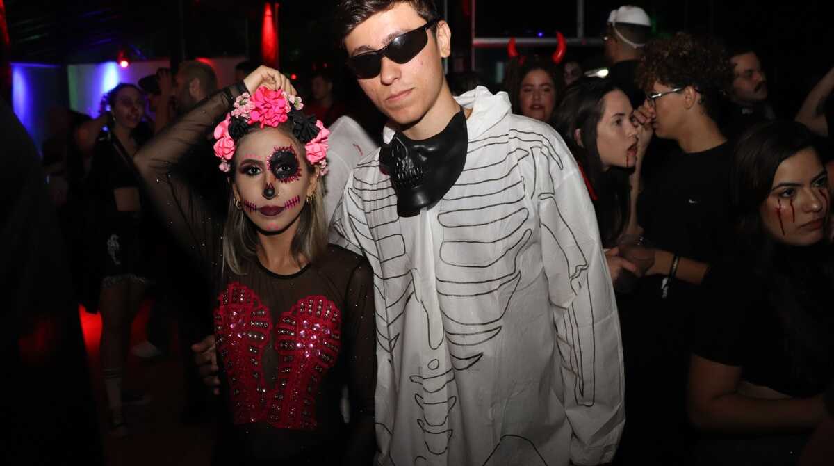 1. Os dois amigos apostaram em maquiagens bem marcantes de caveira e sangue para curtir o Halloween. De visuais macabros e sexys, eles definitivamente foram destaques da noite.