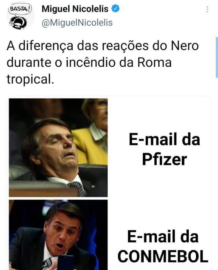 Não demorou muito tempo para que as redes sociais ficassem cheias de ironia e trocadilhos quanto à nova sede da Copa América, que agora será Brasil. Os memes focam, principalmente, na Cloroquina, medicamento recomendado pelo presidente Jair Bolsonaro ao longo da pandemia para tratamento precoce do coronavírus, mesmo sem eficácia comprovada.