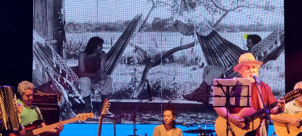 Antes de cantar “Sonhos Guaranis”, Simões fez referências aos povos indígenas que habitam a região e dedicou a música aos moradores da Aldeia Jaguapiru. Alguns deles estavam presentes na plateia e puderam acompanhar a voz quase embargada do compositor. “Estive lá com Seo Getúlio e Dona Alda e passei uma tarde com essas pessoas especiais”, explicou o cantor, ao falar do rezador e da sua esposa.