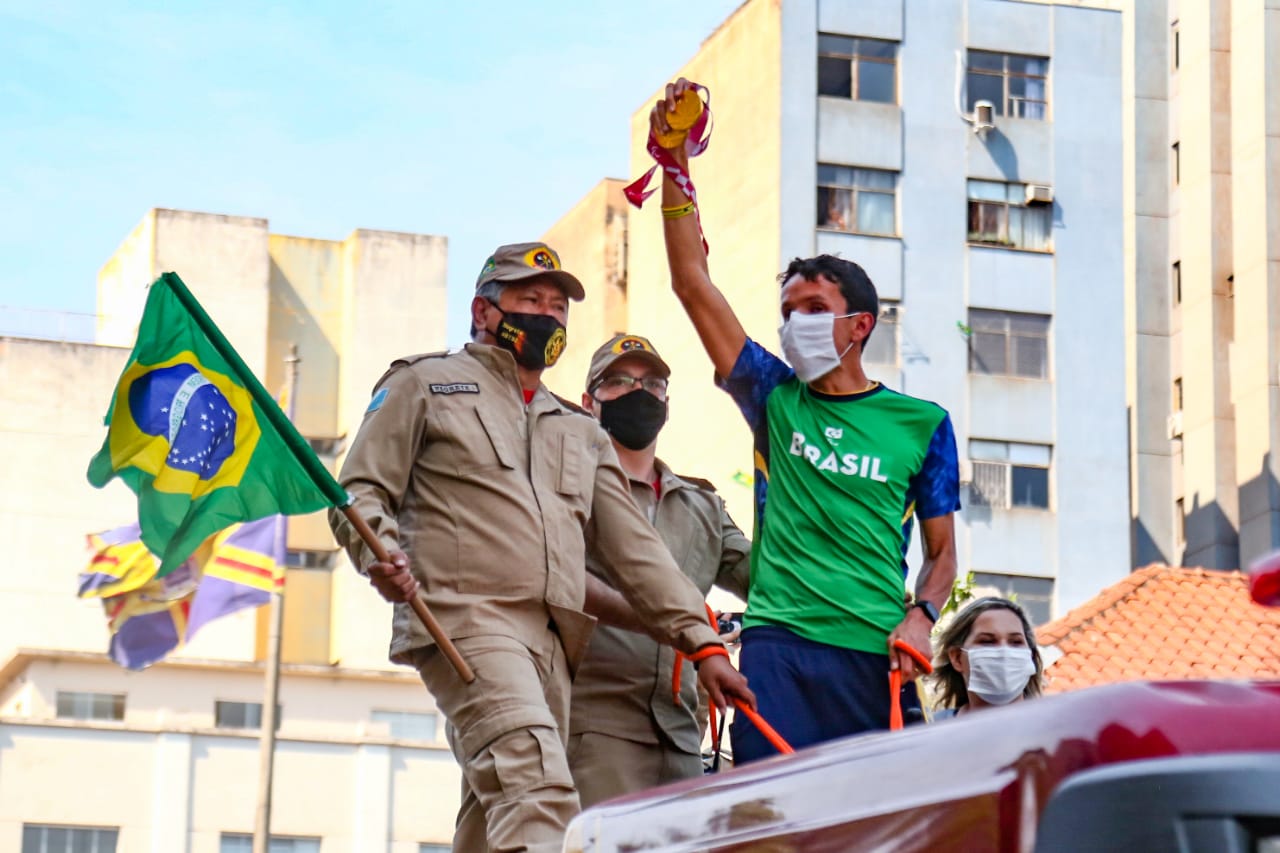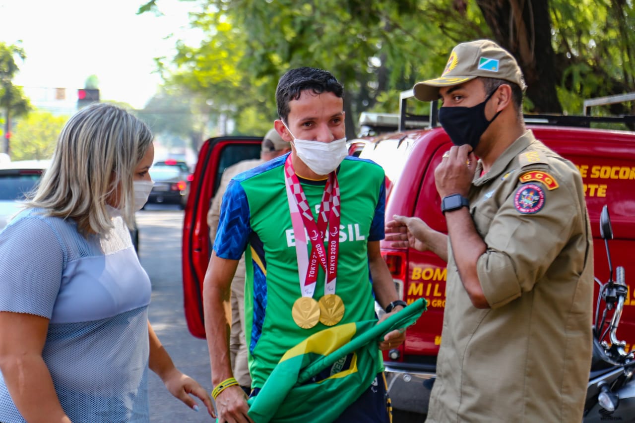 Celebrando suas conquistas nas Paralimpíadas de Tóquio, o paratleta campo-grandense Yeltsin Jacques desembarcou na Capital de MS nesta terça-feira (7) e foi recebido calorosamente por fãs, amigos e familiares, além da apresentação da banda do Corpo de Bombeiros. Tudo em sua homenagem.