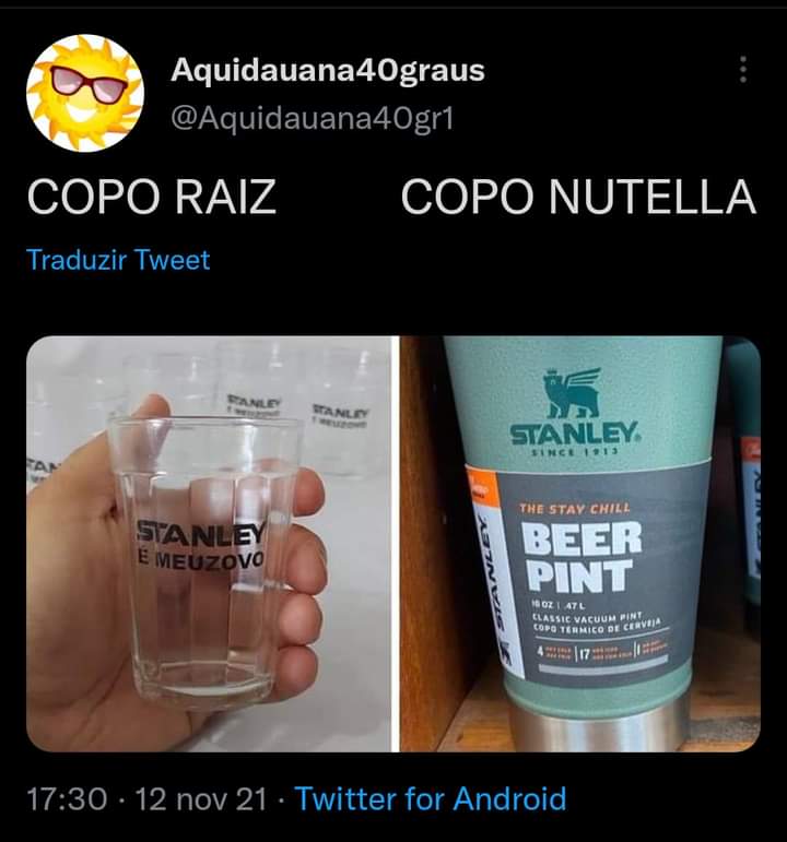 Como assim? Recipiente que mantém a cerveja gelada por mais de quatro horas? É com essa proposta que o copo Stanley tem feito o maior sucesso em todas as partes do Brasil, e Mato Grosso do Sul inteirinho não fica de fora. Por ser um artigo caro, o Stanley se tornou sinônimo de status e é item obrigatório da ‘modinha’ no boteco, além da briga discutindo a utilidade do objeto, tanto pessoalmente quanto na internet, render muitos memes.
