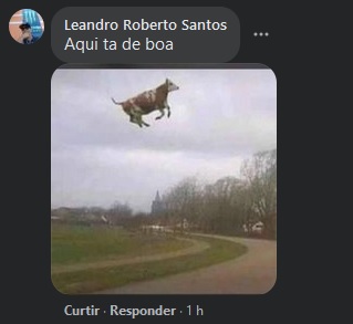 No Facebook, os leitores do Jornal Midiamax utilizaram a criatividade para ‘brincar’ com a situação ocorrida ontem. “Aqui tá de boa” escreveu um leitor ao publicar uma montagem de uma vaca ‘voando’ com a força do vento. Já outro utilizou o meme “um pouco mais” do Leonidas para dizer que em seu bairro a situação estava ainda pior.