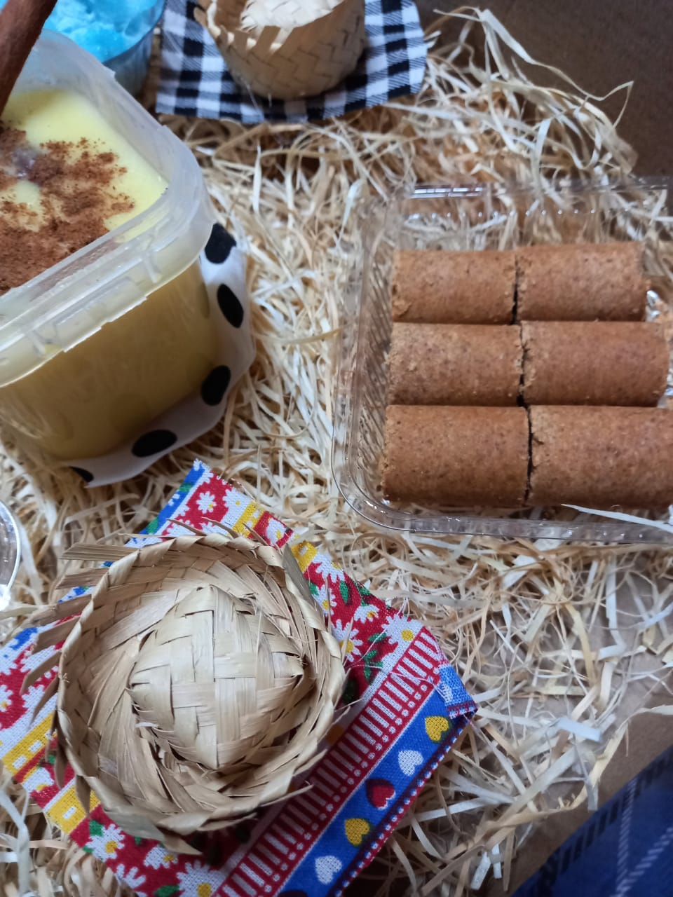 Na caixa, a confeiteira lembra que pipoca não.pode faltar, docinhos com amendoim e a receita maravilhosa de broa preparada pela mãe, entre outras delícias características das festas juninas. Para acompanhar o trabalho basta entrar em contato pelo Instagram ou pelo telefone (67) 98185-4622.