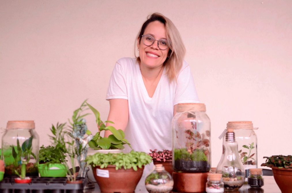 Ao falar da infância, Priscilla de Oliveira Gonçalves, de 39 anos, relembra o “quintal gigante” da casa dos pais, em Caarapó, região sul do estado, onde ela plantou e cultivou muitas plantas. Arquiteta por formação e gestante durante a pandemia, foi neste período que ela se reconectou a estas memórias, desenvolvendo uma nova profissão que tanto ama: terrarista.